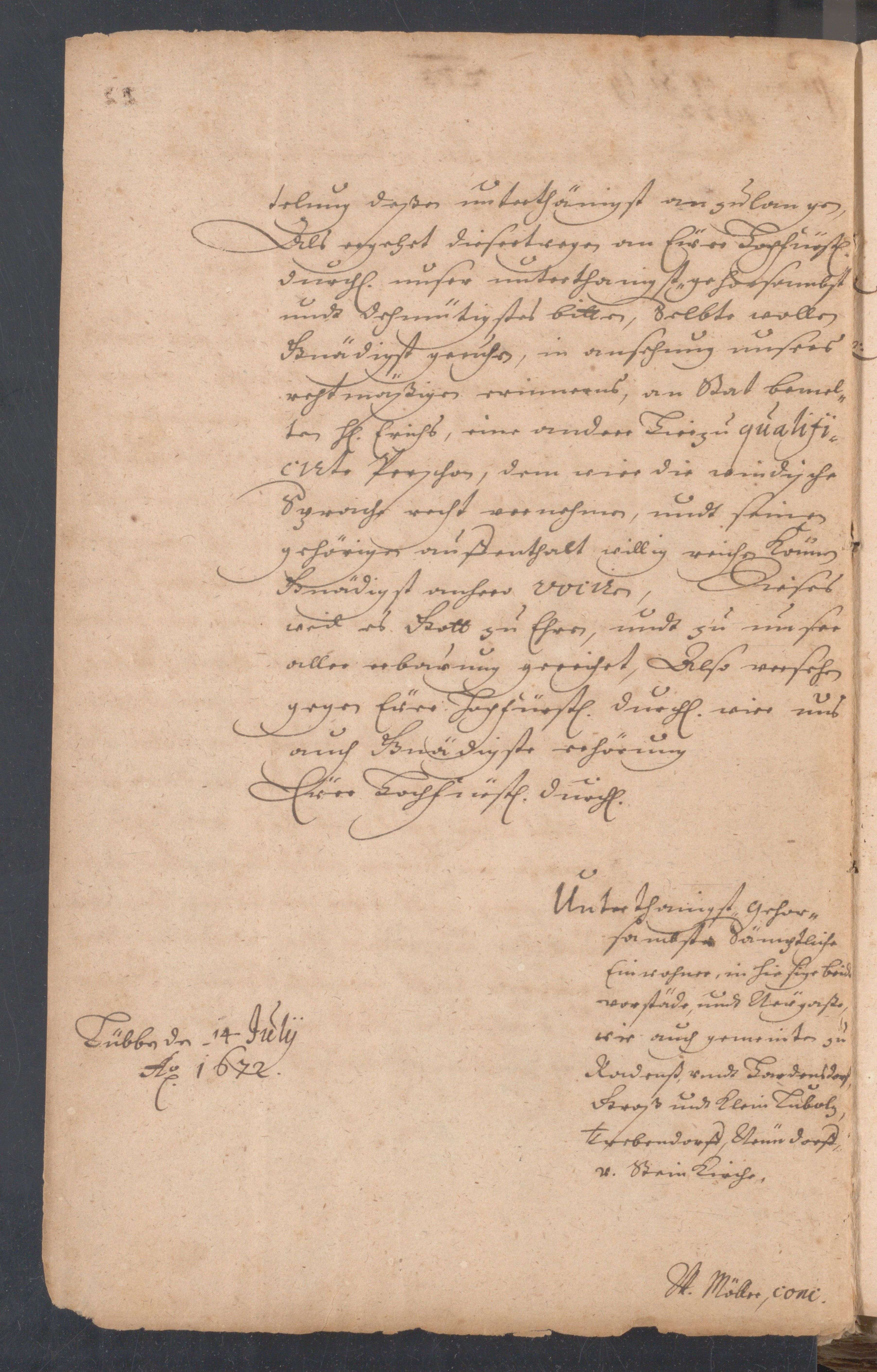 Vertreter der sorbischen Gemeinde in Lübben an Herzog Christian I. von Sachsen-[ Merseburg / Konsistorium der Niederlausitz]: verlangen, anstelle Samuel Erichs [wohl Samuel Falter] einen Küster mit zufriedenstellenden sorbischen Sprachkenntnissen zu vozieren.