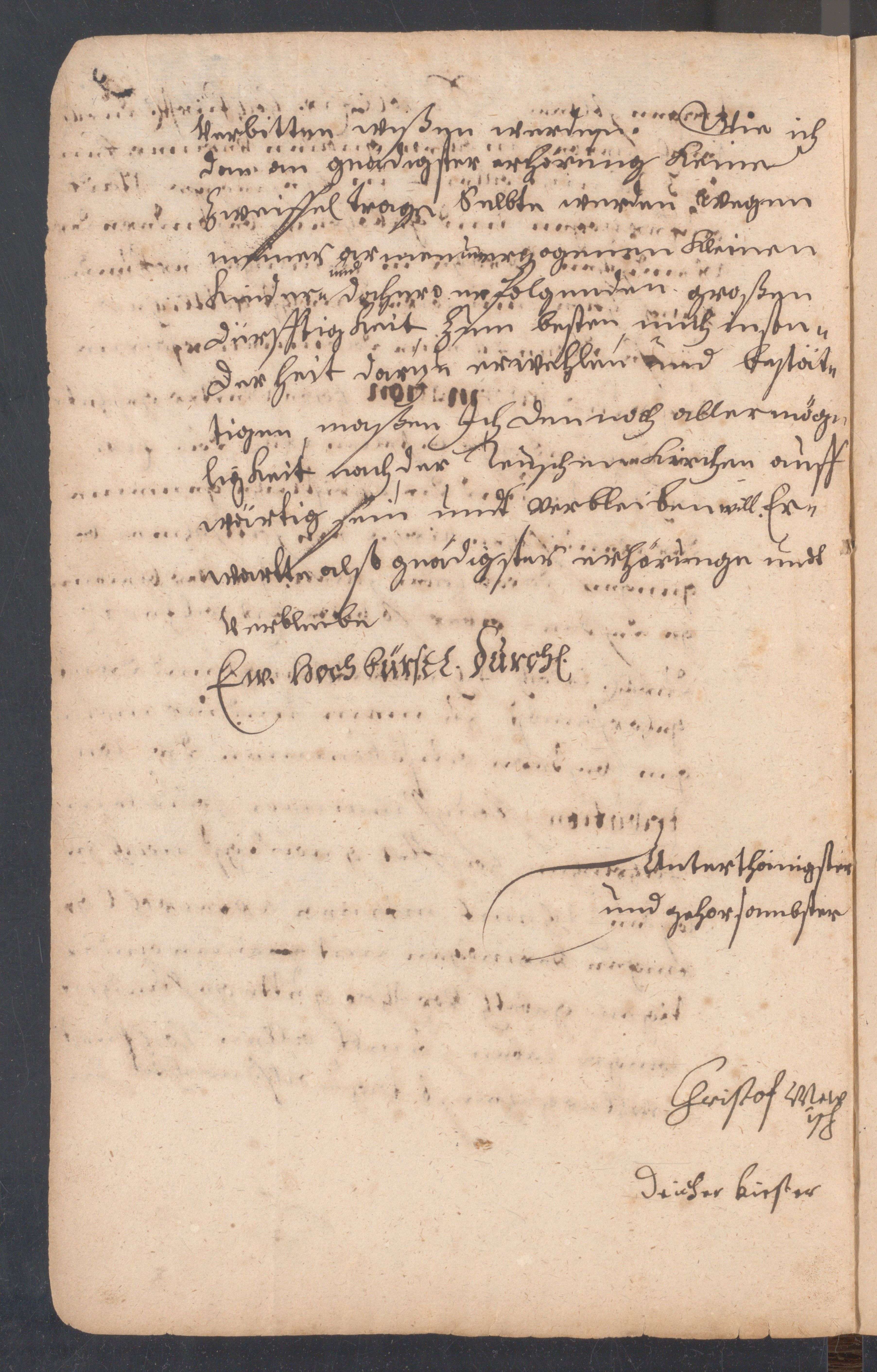 Der Küster an der deutschen Kirche in Lübben, Christoph Mewisch, an Herzog Christian I. von Sachsen-[ Merseburg / Konsistorium der Niederlausitz]: bewirbt sich um das Küsteramt an der sorbischen Kirche.