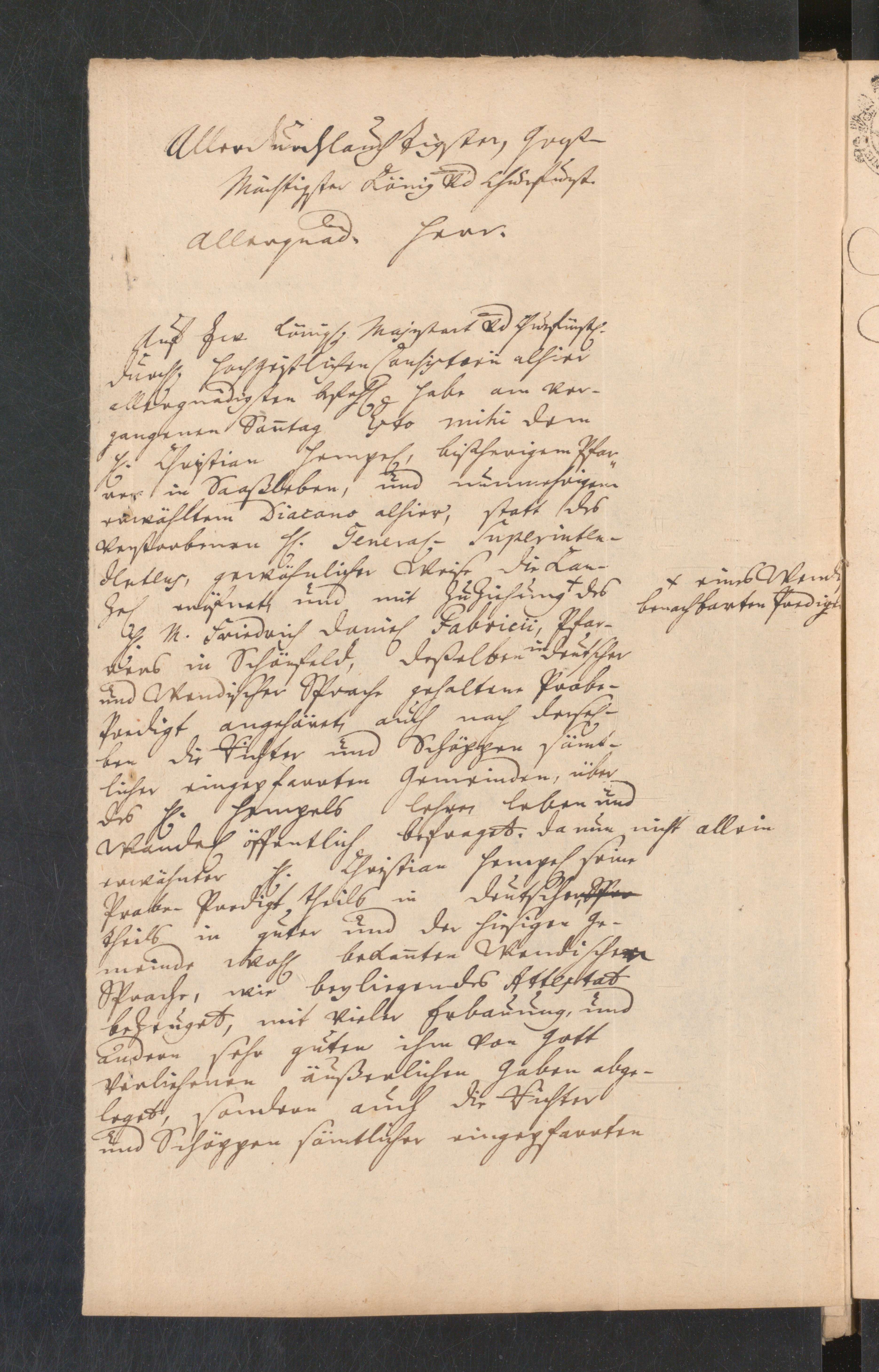 N. N. an [Friedrich August II. / Konsistorium der Niederlausitz]: berichtet über die erfolgreiche, in deutscher und sorbischer Sprache abgelegte Probepredigt des Christian Hempel.